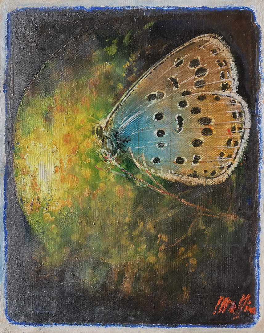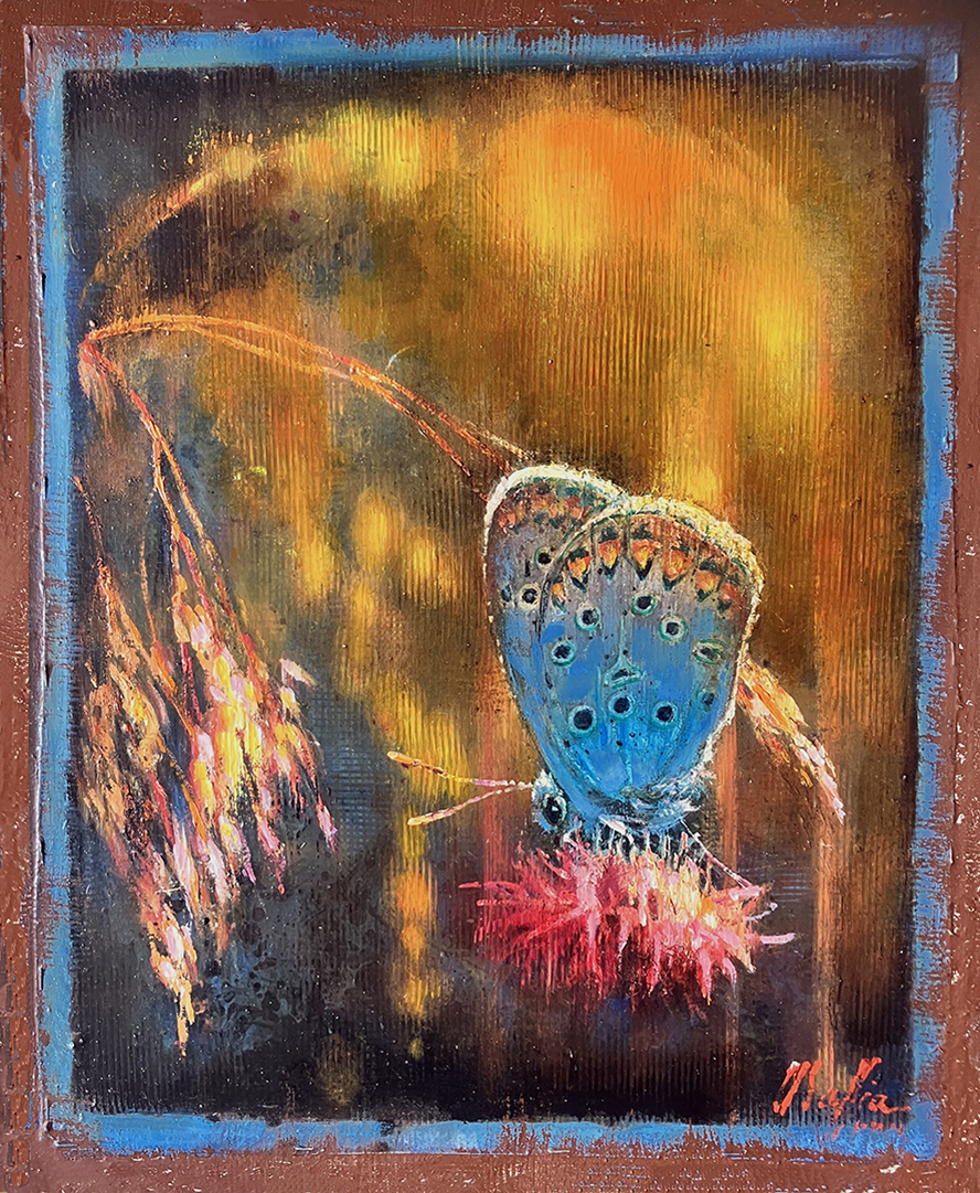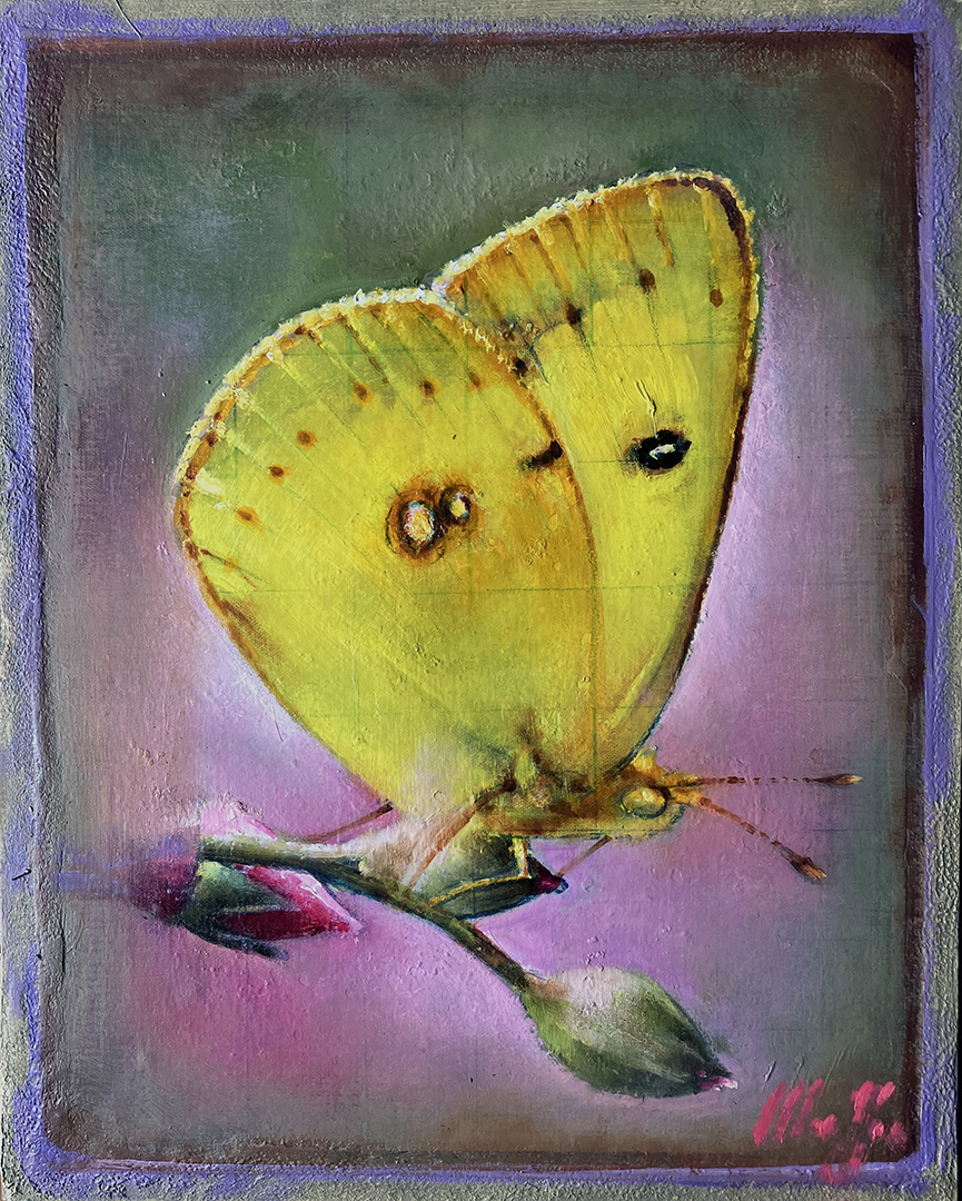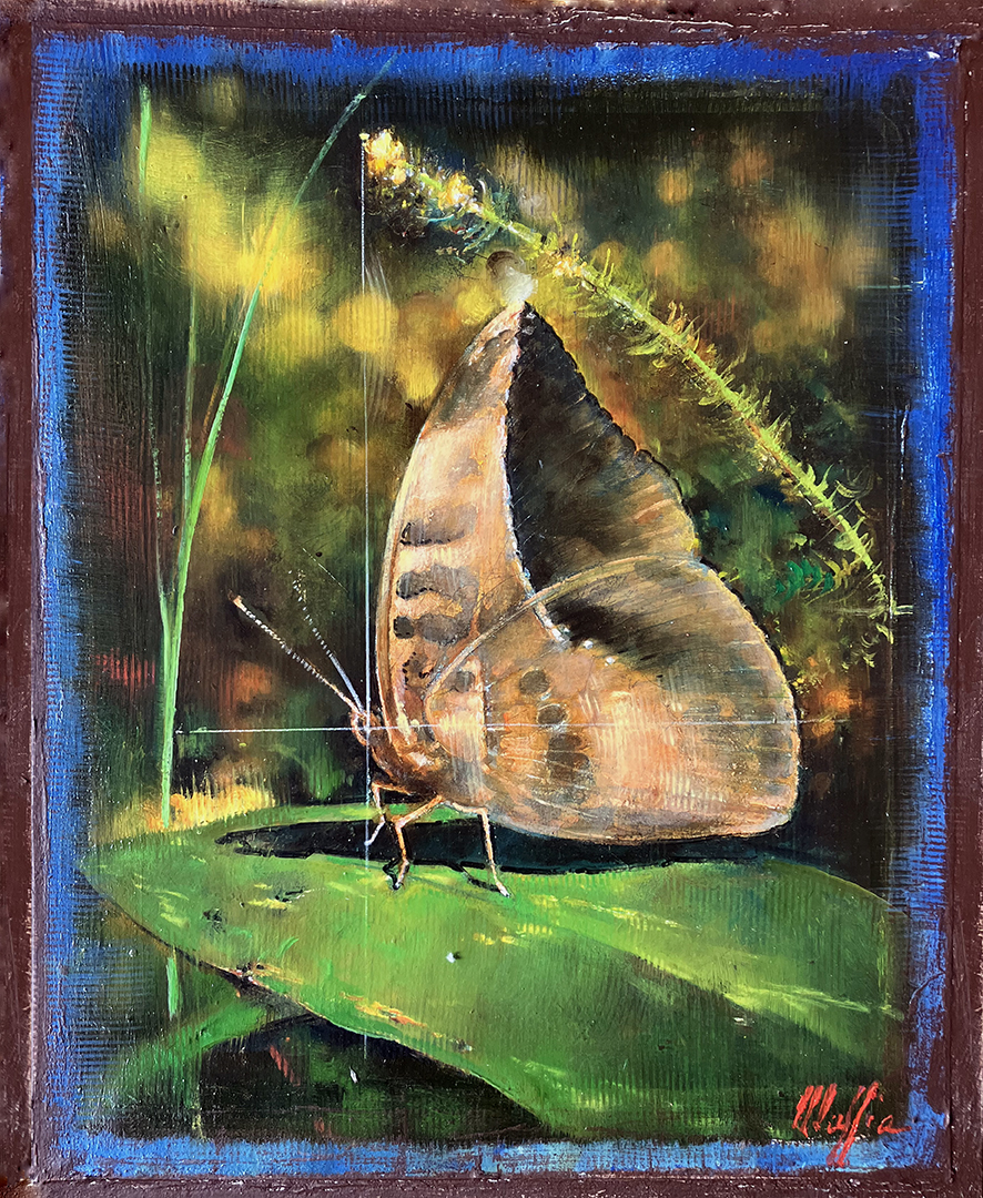 The birds are almost beside the point. It’s what’s surrounding them that captivates the viewer: the lettering that spells out the chirper’s names, the break from the precise borders of the classic French Matte giving the painting a contemporary twist, and the random drips punctuating deliberate, masterful strokes. Daniel Maffia’s recent series of paintings remind us how similar our existence is to the birds we share our yards and landscapes with: “They build like we do, they hang about like we do, they bicker and occasionally sing. They even appropriate other people’s songs, just like we do,” he says.